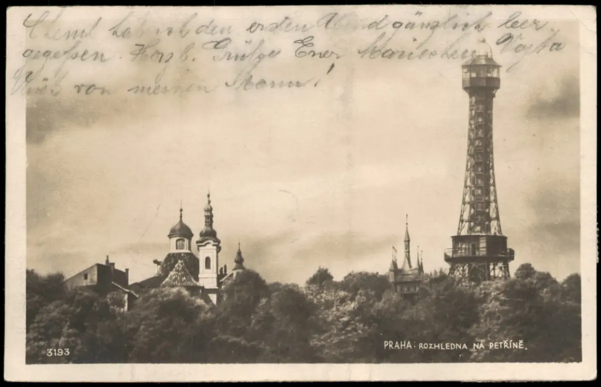 Postcard Prag Praha ROZHLEDNA NA PETŘÍNĚ. Turm 1929