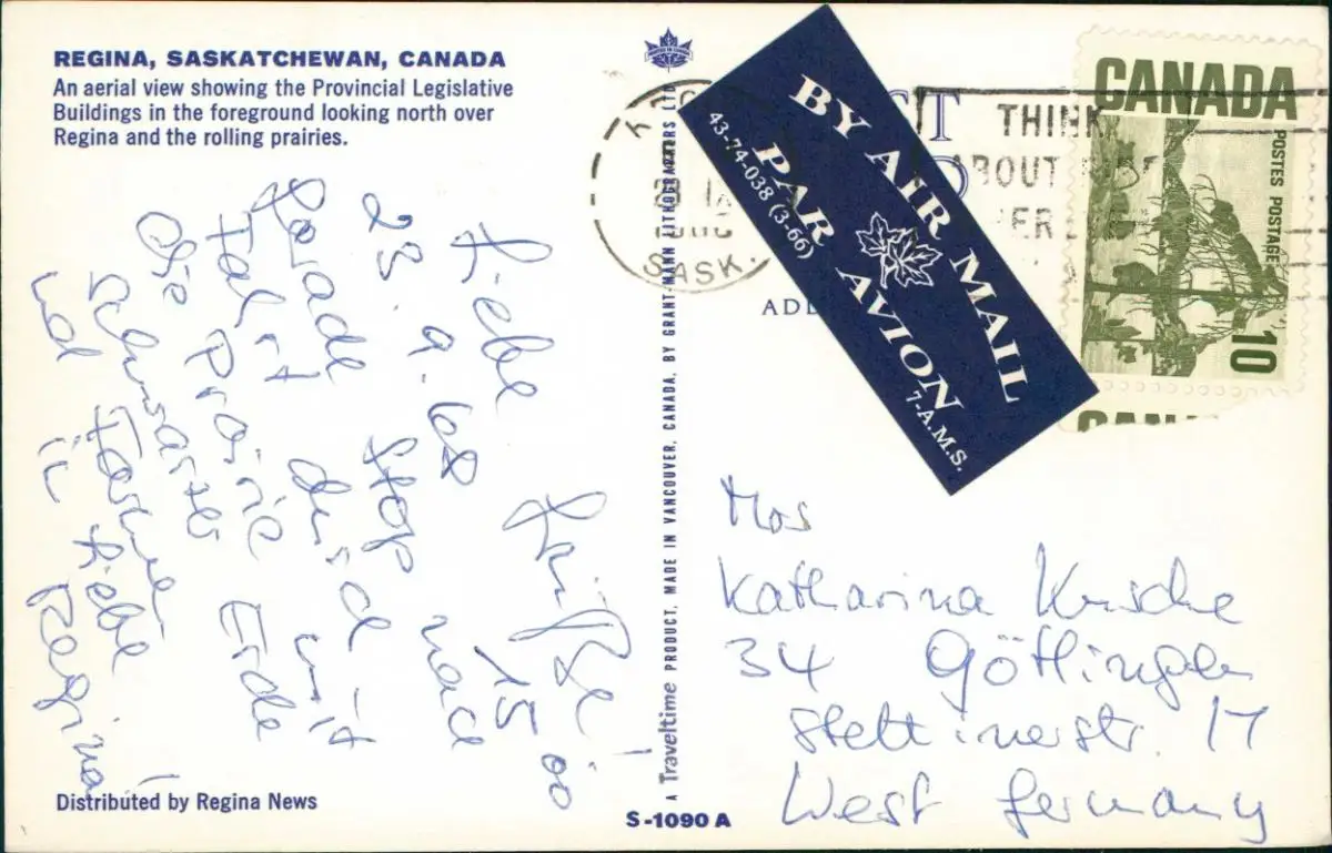 Postcard Regina (Saskatchewan) Luftbil areal view 1968 gel. Air Mail