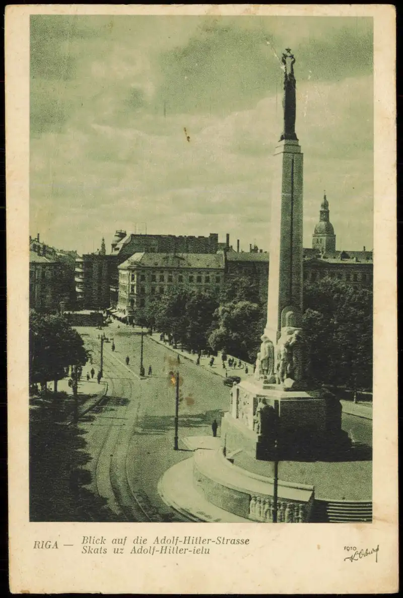 Postcard Riga Rīga Ри́га Denkmal, Straße 1940