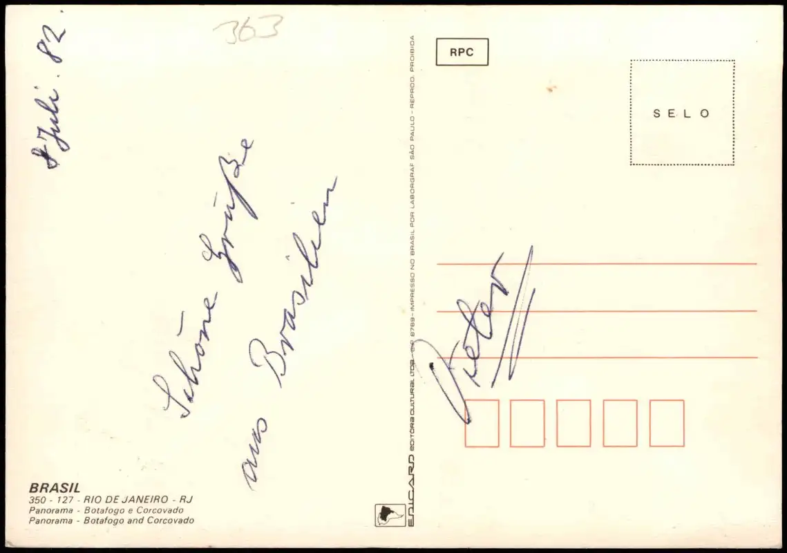 Postcard Rio de Janeiro Panorama-Ansicht Botafogo e Corcovado 1982
