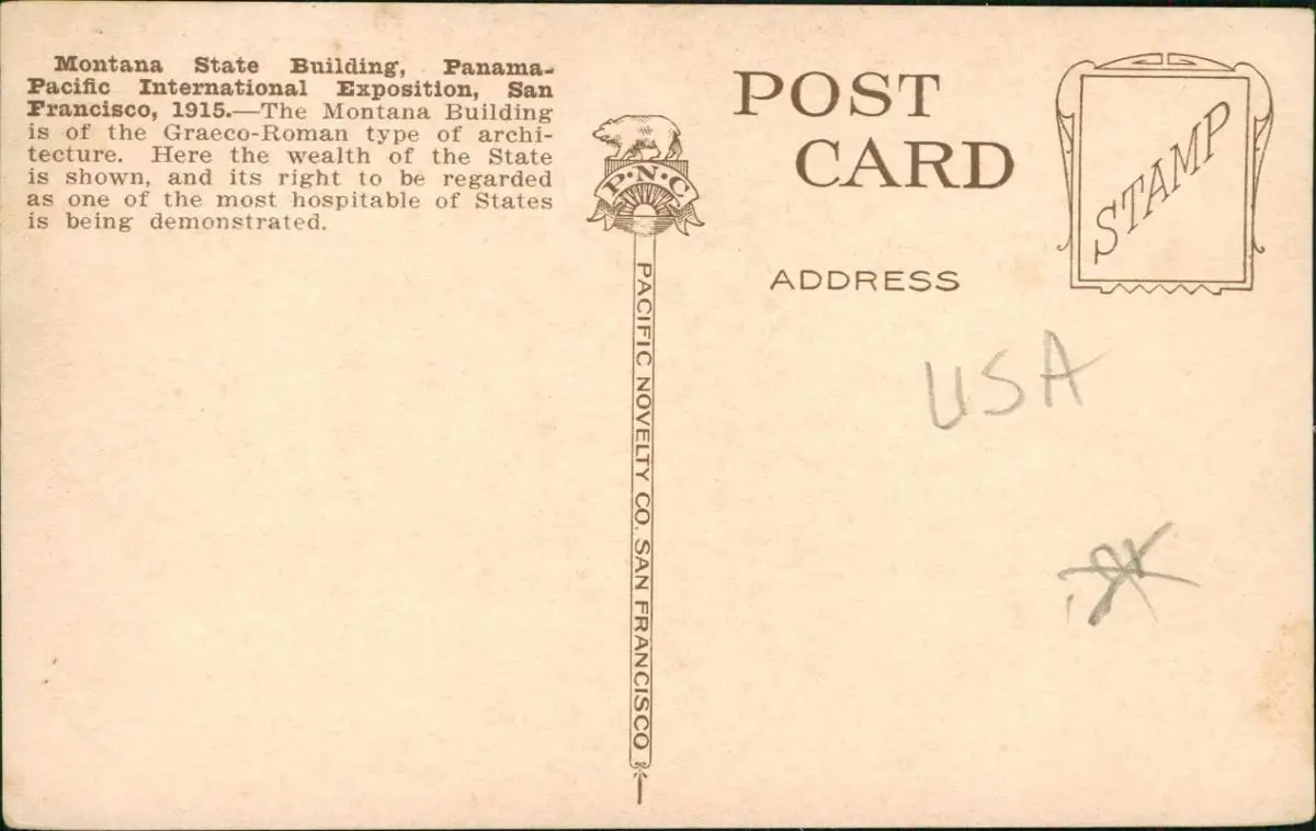 Postcard San Francisco Montana Sate Building-Pan Pac. Int. Expo 1915