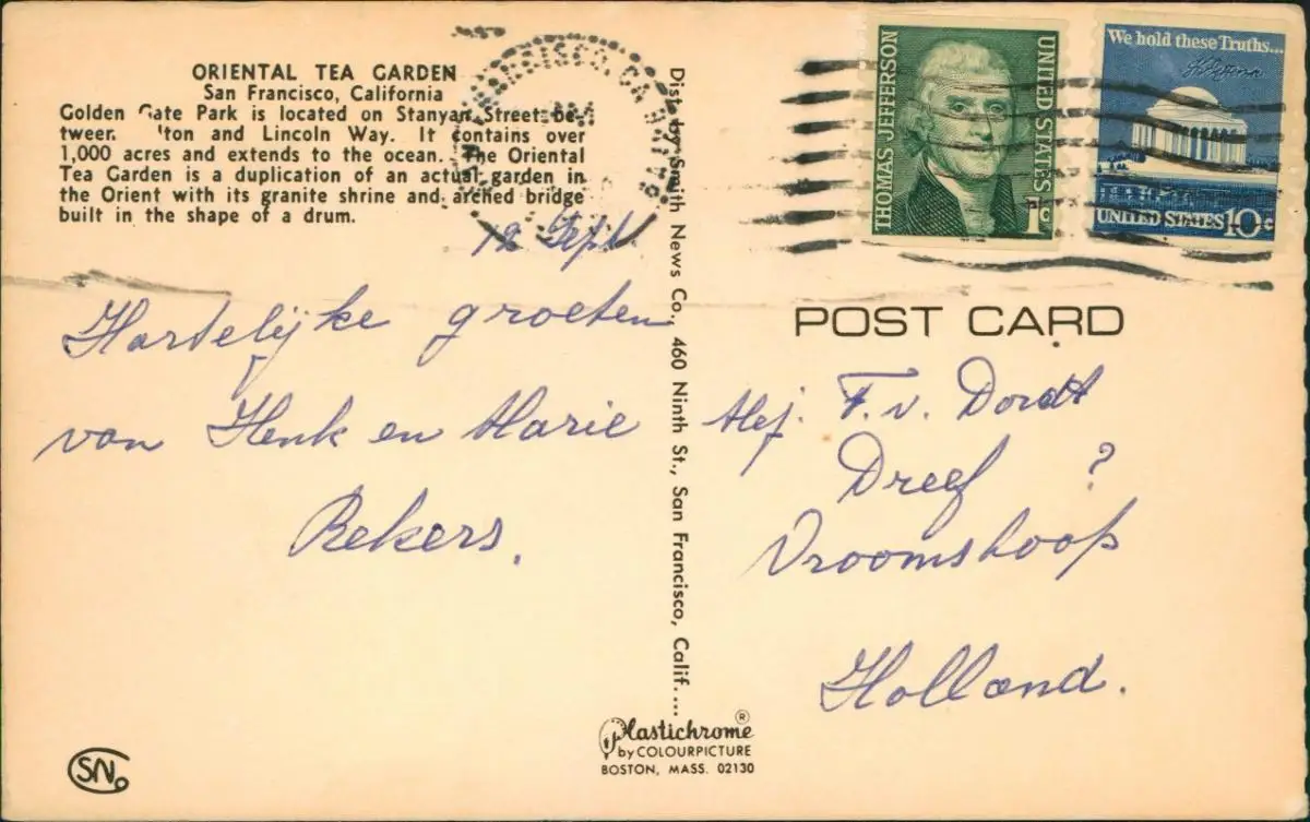 Postcard San Francisco ORIENTAL TEA GARDEN 1957