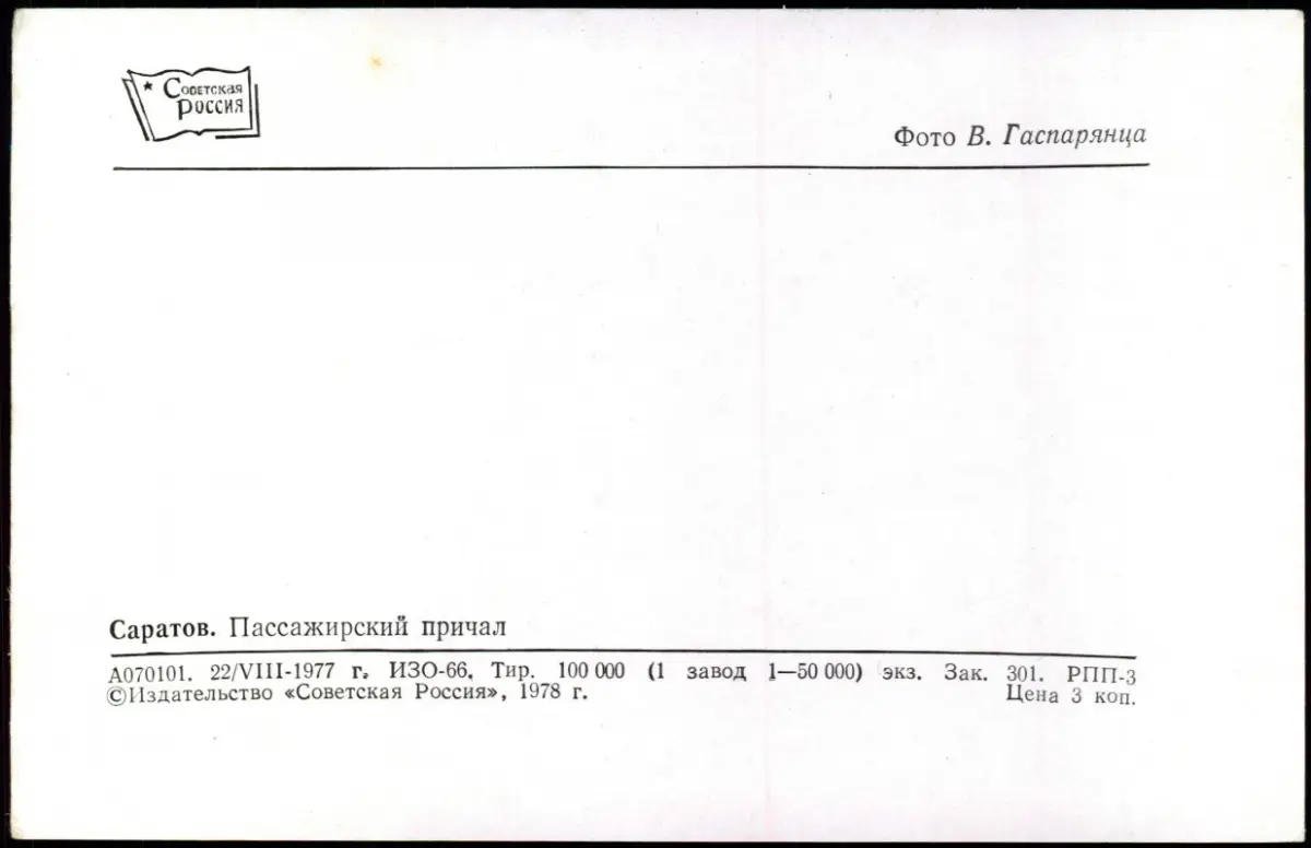 Postcard Saratow Саратов Anlegestelle an der Wolga - Schiffe 1978