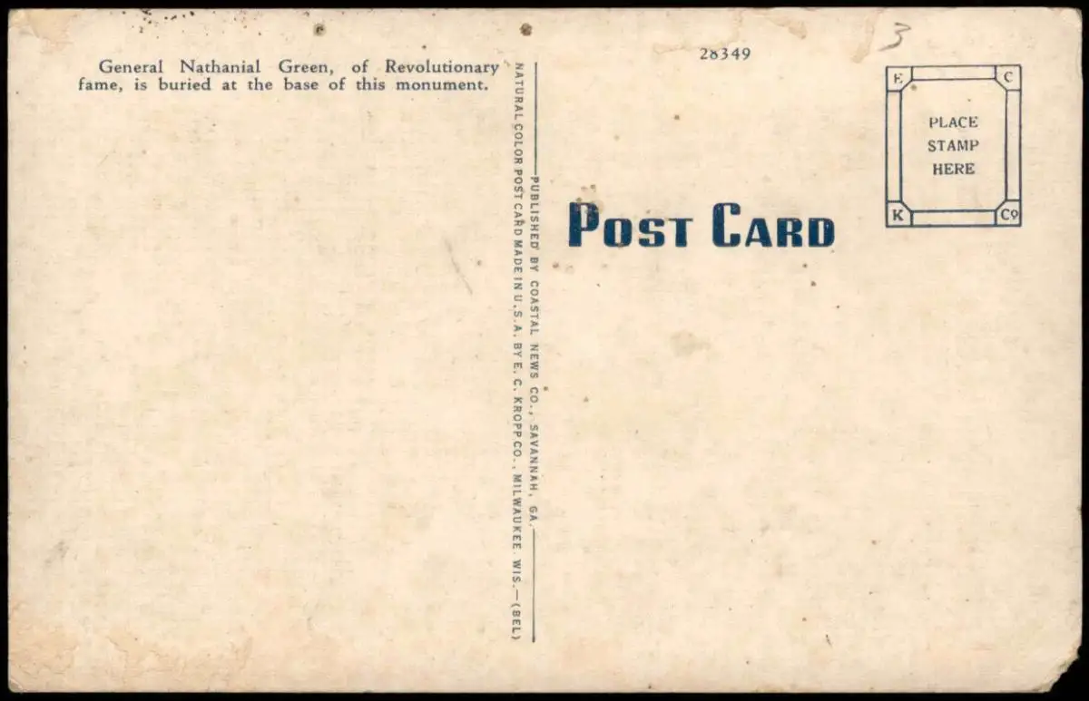 Postcard Savannah (Georgia) GREENE MONUMENT, Denkmal, Georgia USA 1930