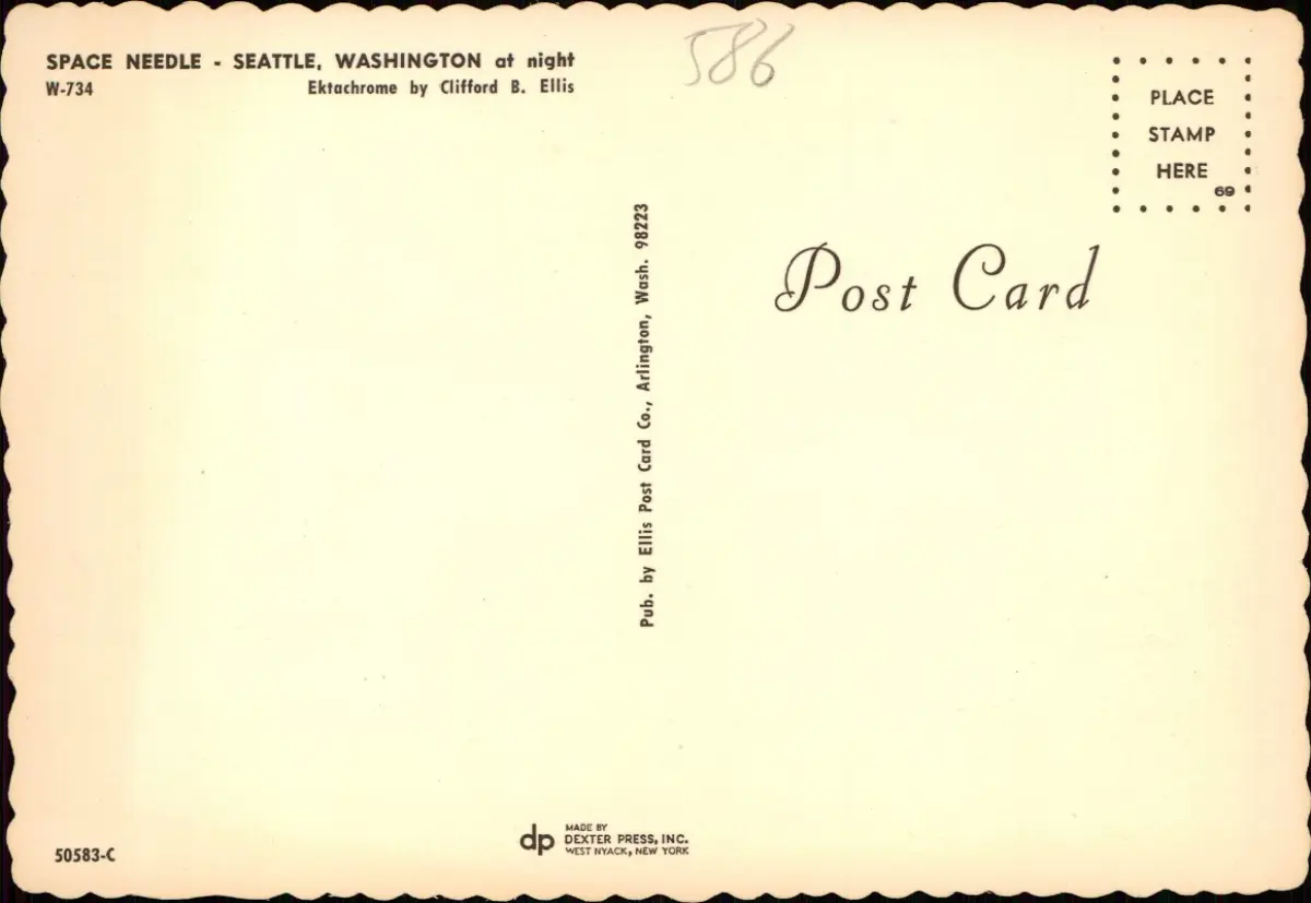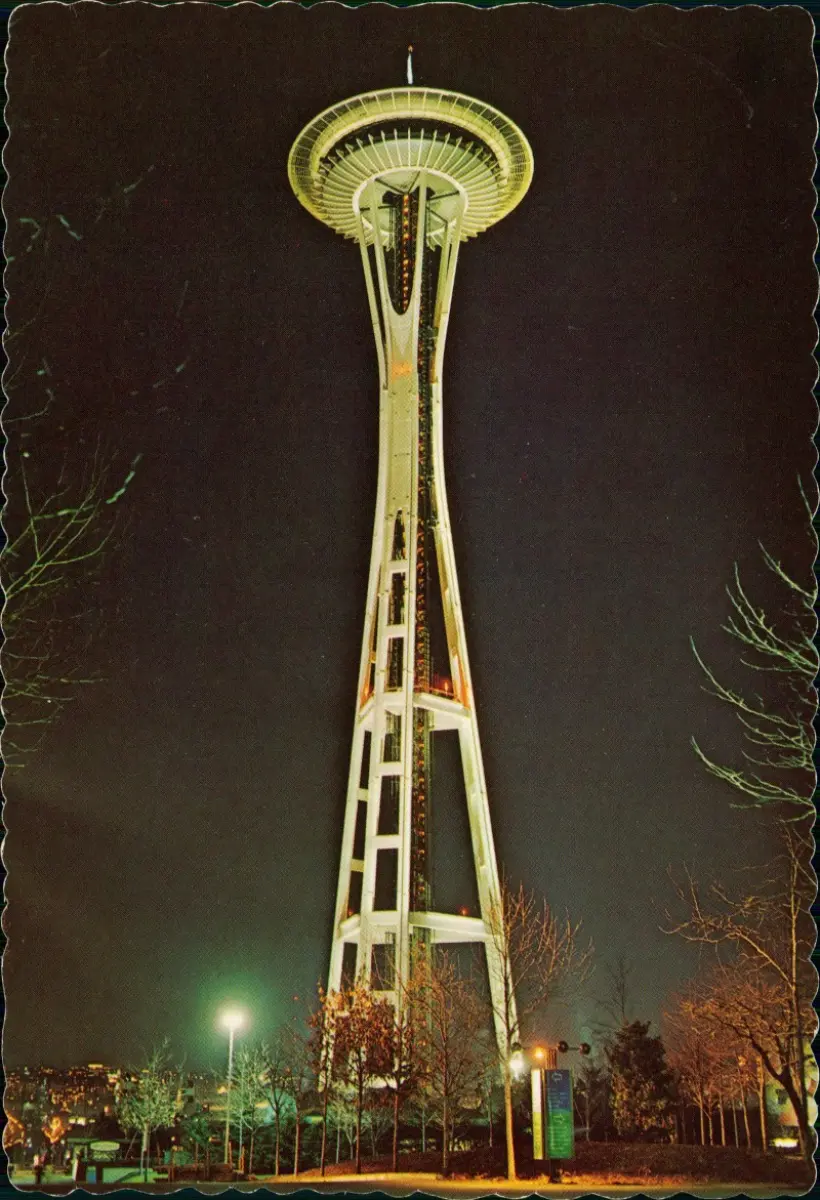 Postcard Seattle SPACE NEEDLE at night 1978