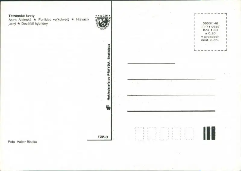 Postcard .Slowakei Tatranské kvety Vysoké Tatry/Hohe Tatra Blumen 1987