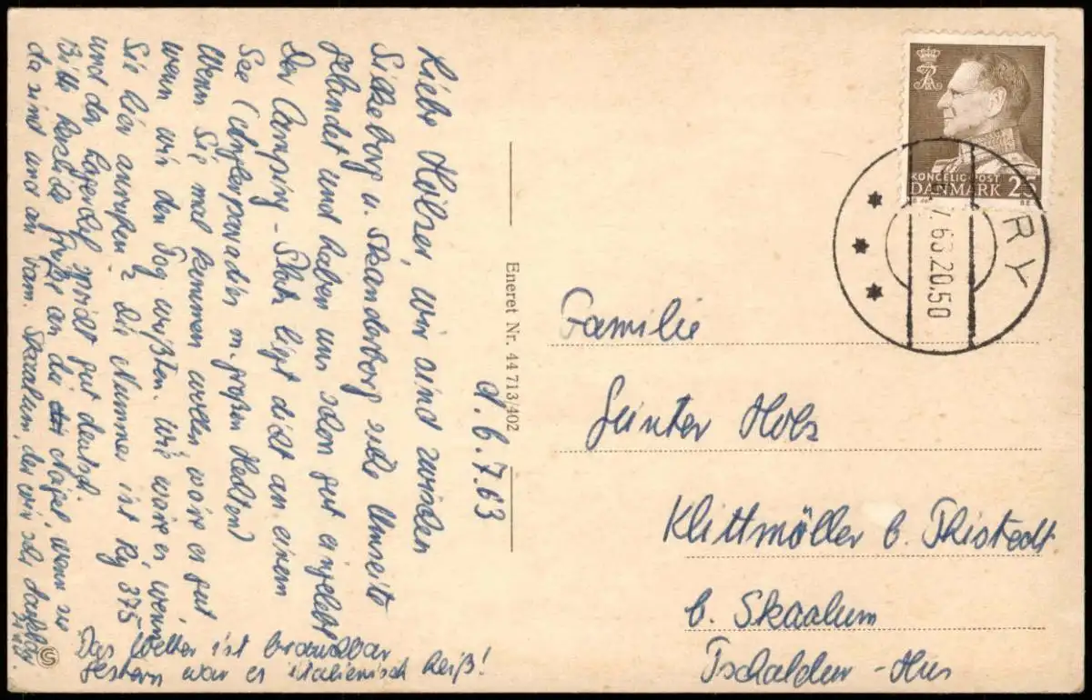 Postcard Søndre Ege-Ry Danmark SØNDER ECE Camping 1963