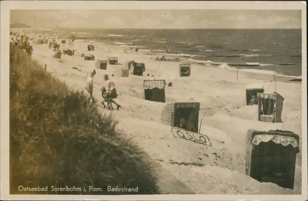 Postcard Sorenbohm Sarbinowo (Mielno) Strand, Strandkörbe 1930