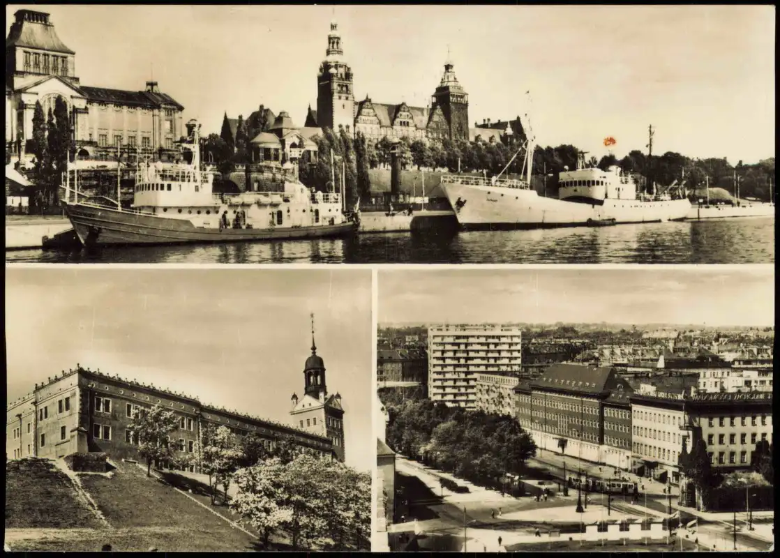 Postcard Stettin Szczecin 3 Bild Stadtansichten Schiffe Straße 1975