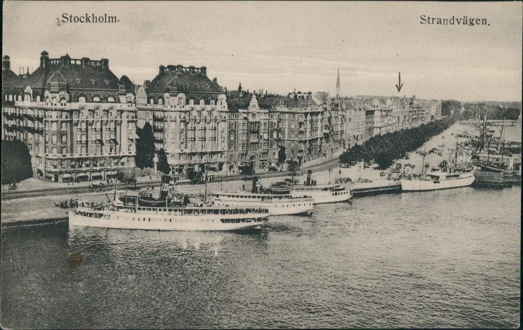 Postcard Stockholm Hafen Strandvägen Schiffe a.d. Anlgestelle 1923