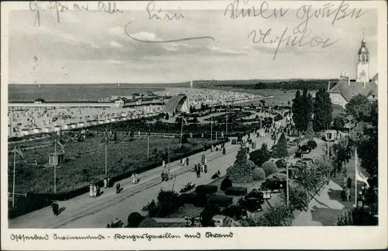 Postcard Swinemünde Świnoujście Konzertpavillon und Promenade 1935