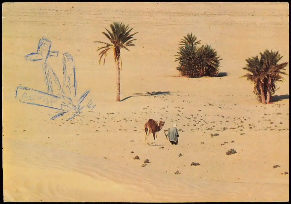 Postcard Tataouine Süden Wüste mit Palmen Trampeltier 1985