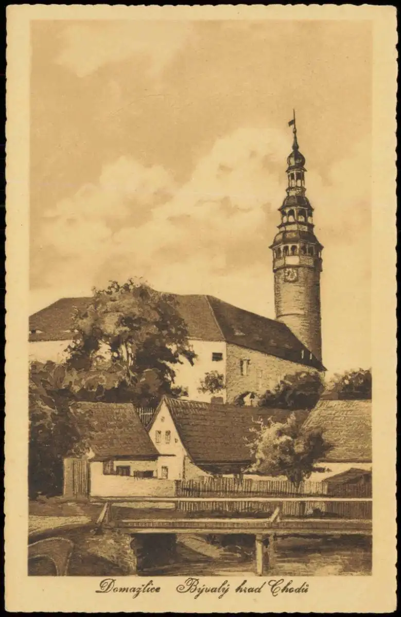 Postcard Taus Domažlice Bývalý hrad Chodi 1927