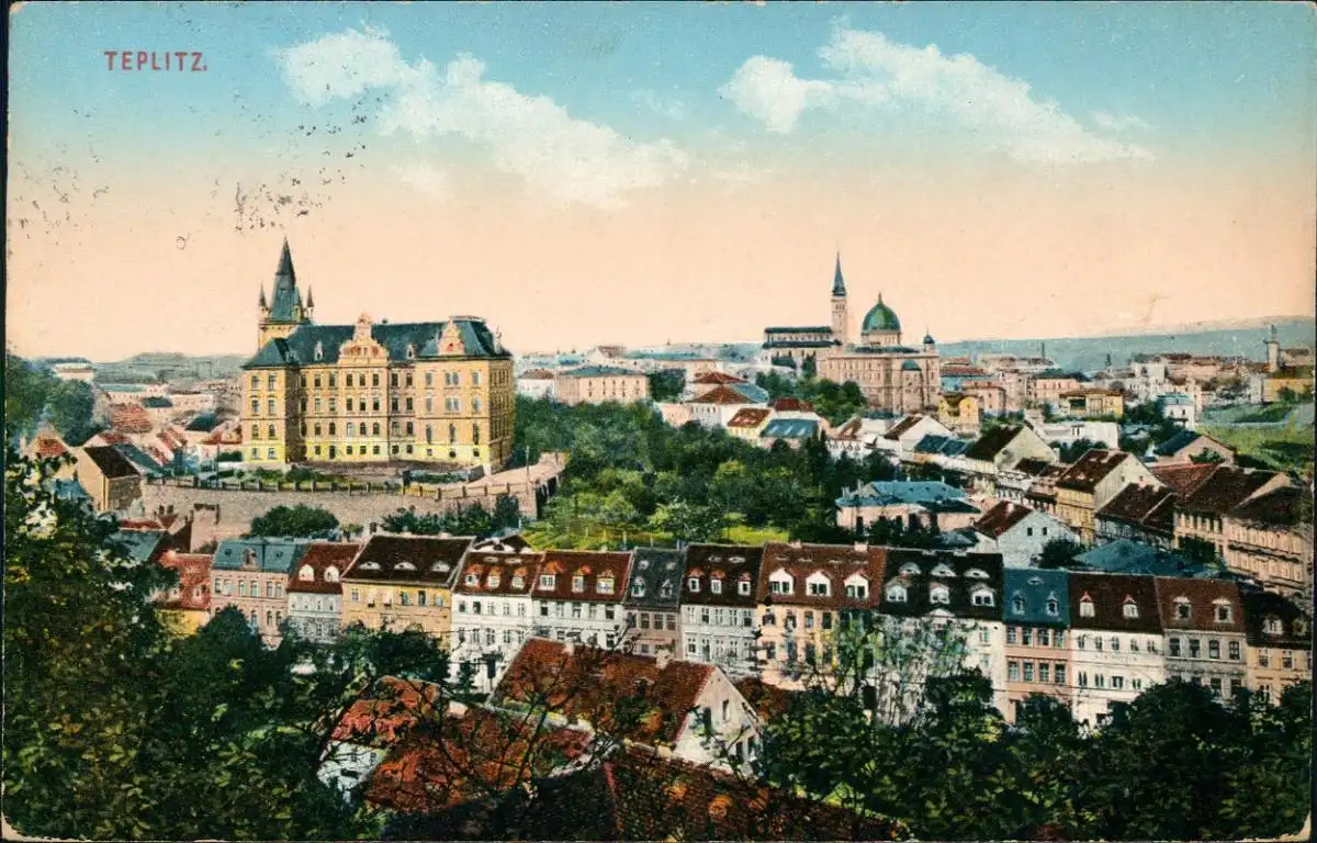 Postcard Teplitz-Schönau Teplice Stadtblick 1915 gel. Zensur Geprüft