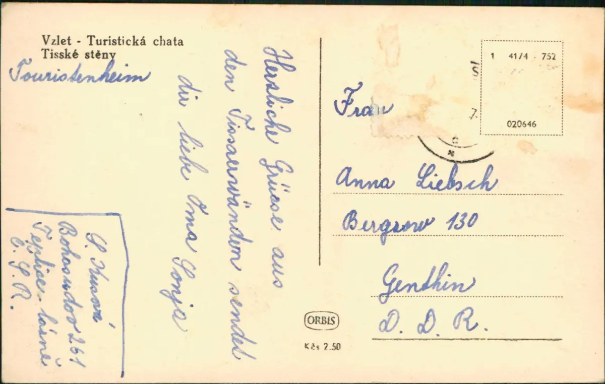 Postcard Tissa Tisá Gatshaus Baude Vzlet Turistická chata 1962