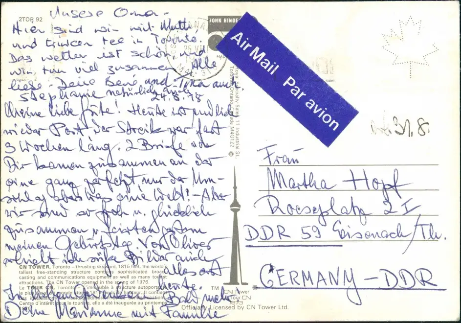 Postcard Toronto CN Tower - Stadt gel Air Mail 1978