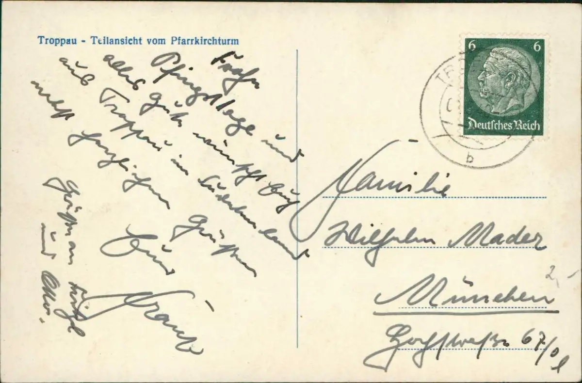 Postcard Troppau Opava Teilansicht vom Pfarrkirchturm 1938