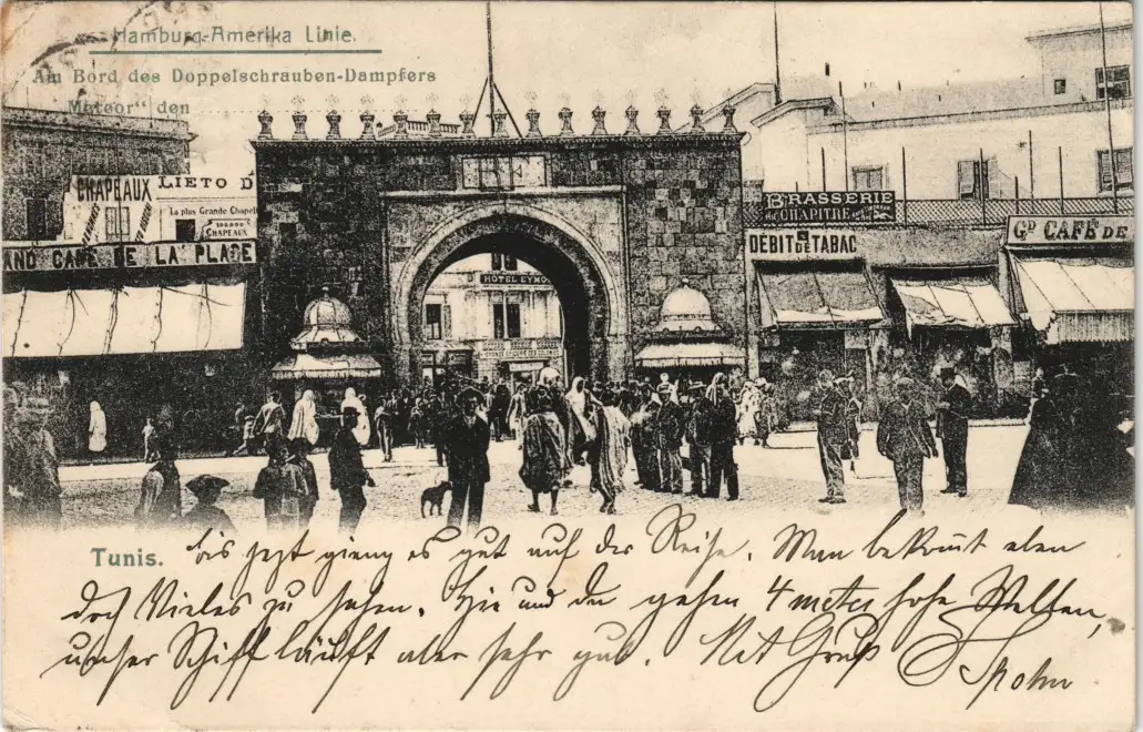 Postcard Tunis تونس Geschäfte Straßen - Hamburg Amerika Linie 1908