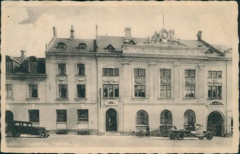 Postcard Viborg Afholdshotellet mit Oldtimern 1932