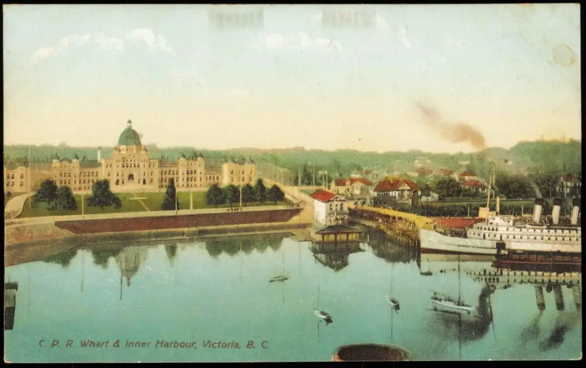 Postcard Victoria C. P. R. Wharf & Inner Harbour 1912