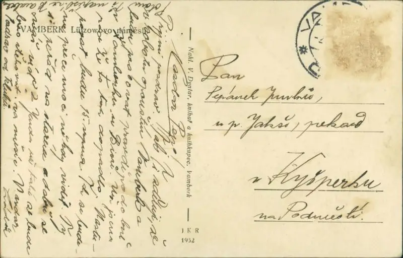 Postcard Wamberk Vamberk Blick auf die Stadt 1924