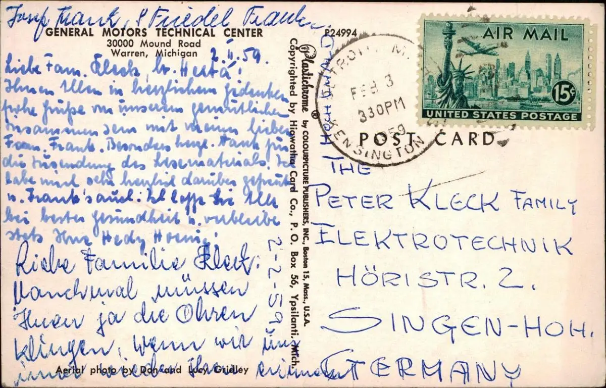 Postcard Warren GENERAL MOTORS TECHNICAL CENTER 1959