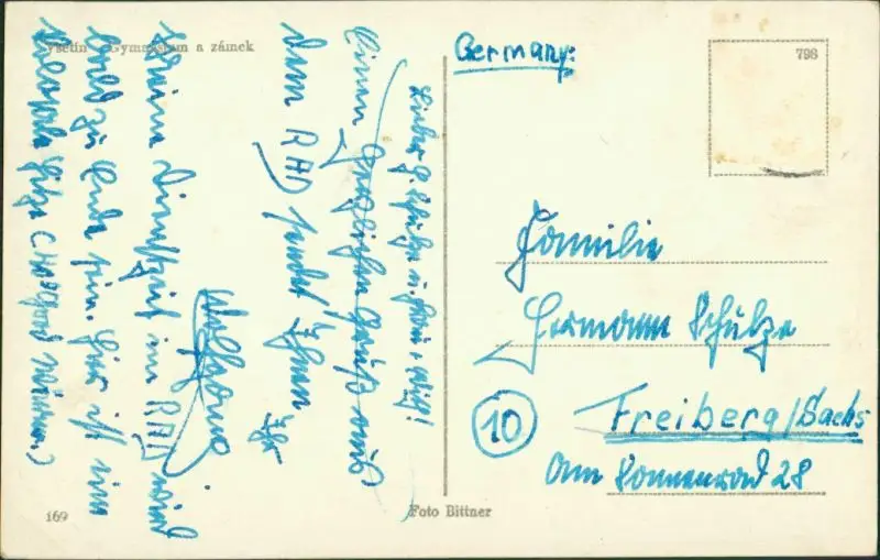 Postcard Wesetin Vsetín | Settein Gymnasium 1965