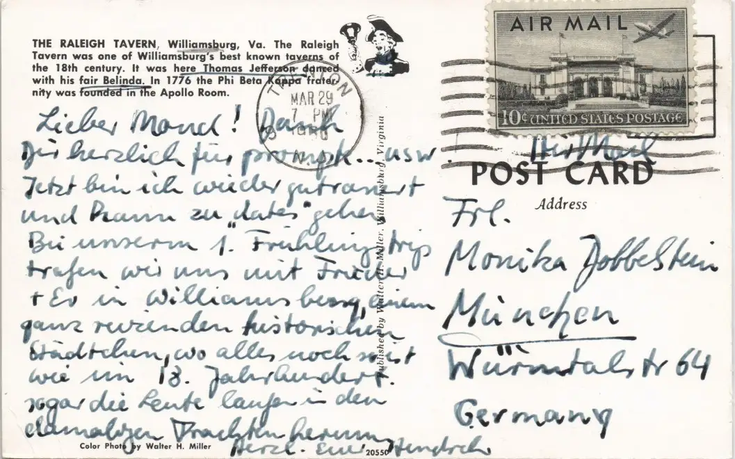 Postcard Williamsburg (VA) THE RALEIGH TAVERN, Virginia USA 1960