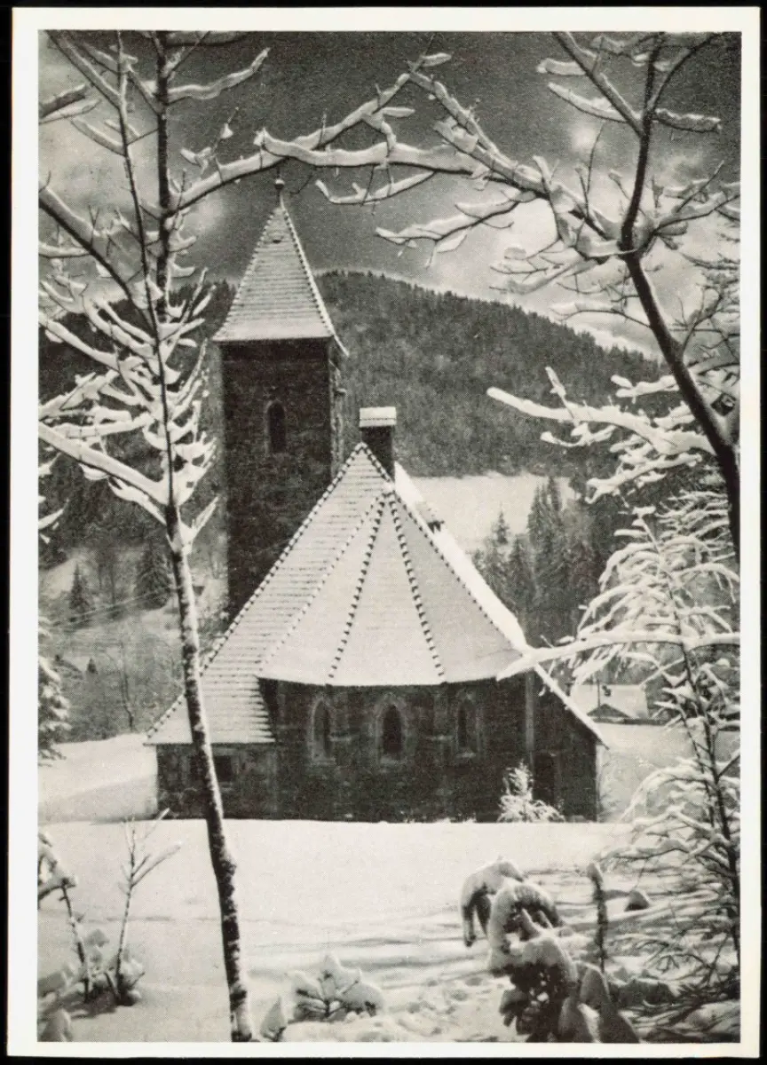 Postcard Wölfelsgrund Międzygórze Kirche im Winter 1934