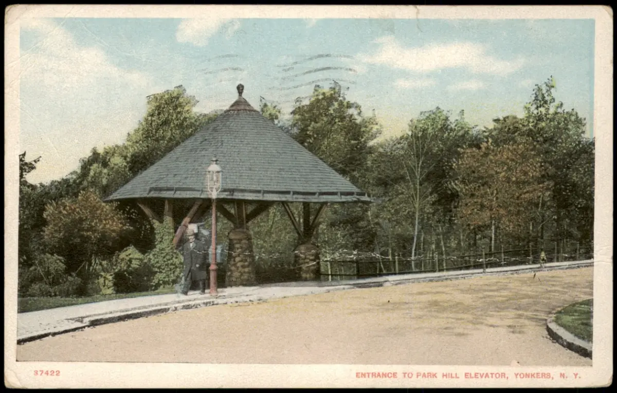Postcard Yonkers Entrance to Park Hill Elevator 1912