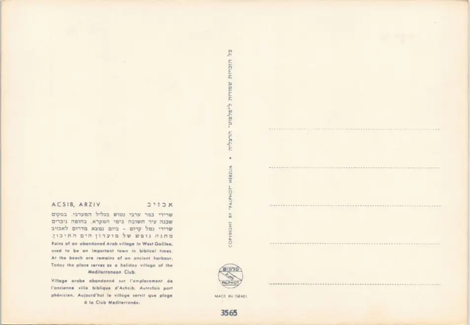 Postcard allgemein ACSIB, ARZIV West Galilee Club Mediterranean 1970