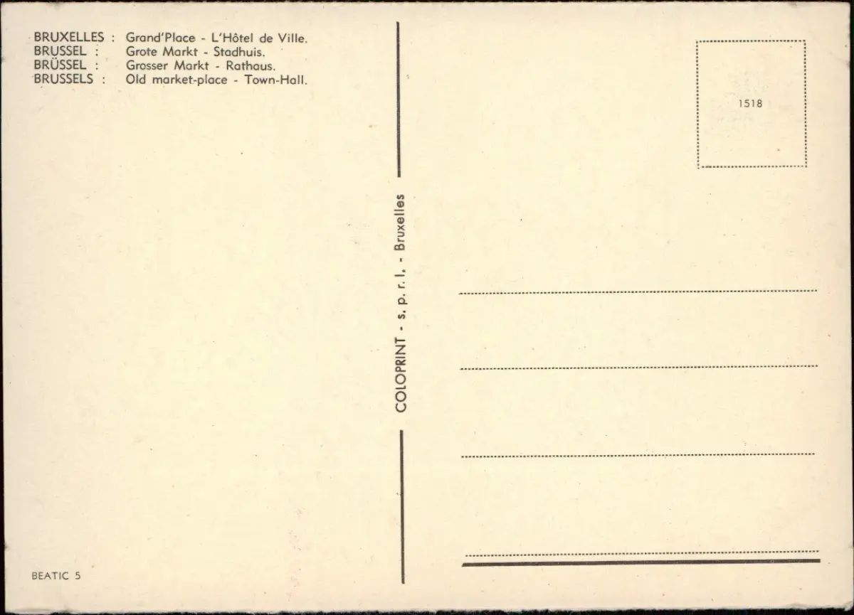 Postkaart Brüssel Bruxelles Rathaus Grote Markt Stadhuis 1960
