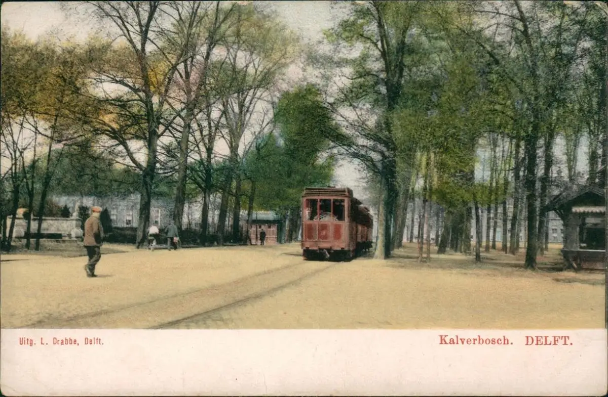 Postkaart Delft Delft Kalverbosch. Tram - Kiosk 1911