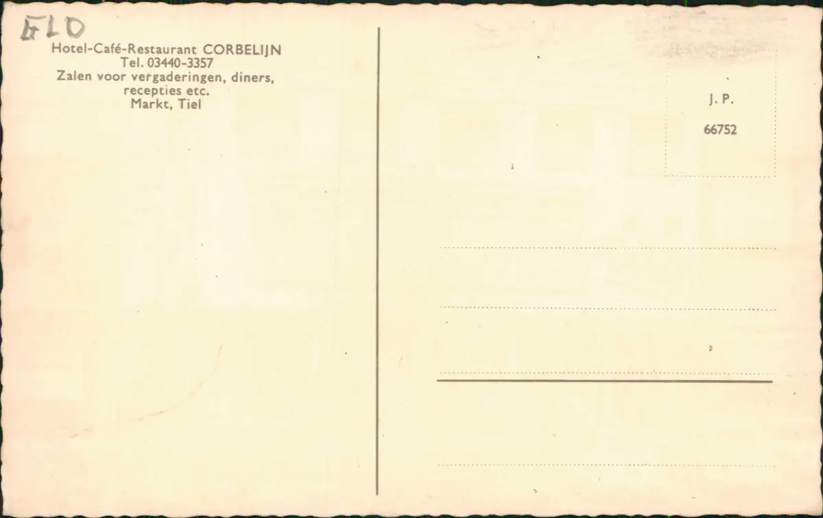 Postkaart Tiel Hotel-Café-Restaurant CORBELIJN 1972