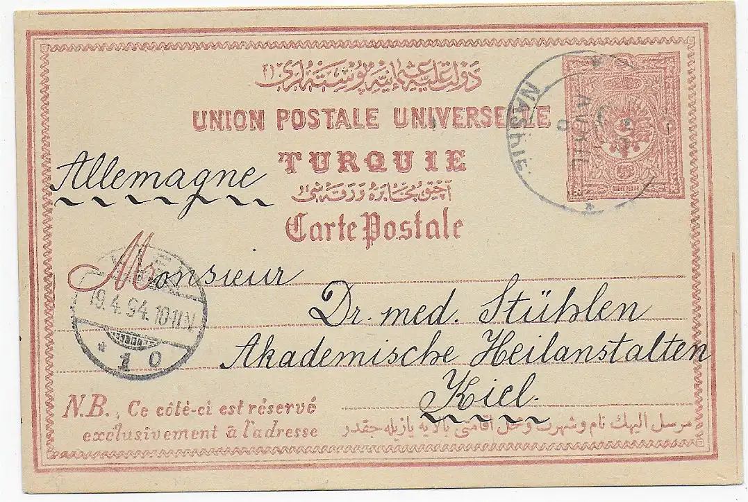 Postkarte Nasre - Nazareth - Holy Land, 1894 nach Kiel