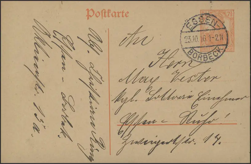 Postkarte P 110I Germania 7 1/2 Pf. ESSEN-BORBECK 23.10.16