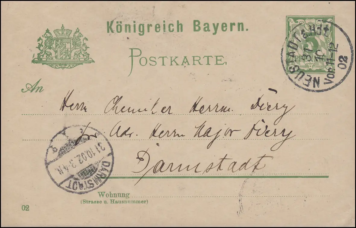 Postkarte P 56II/02 Ziffer mit DV 02, NEUSTADT a. Hdt. 31.10.1902 nach DARMSTADT