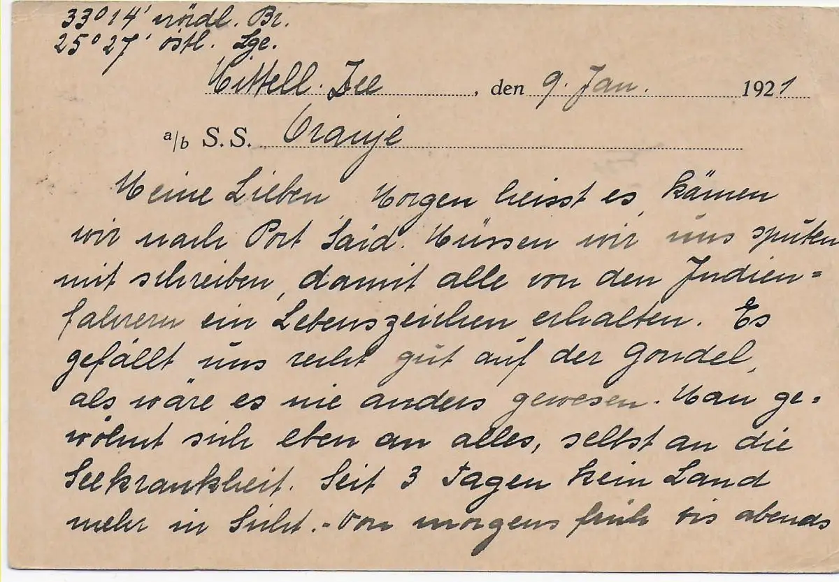 Postkarte Port Said, 1921 nach Basel, aus Schiff S.S. Oranje