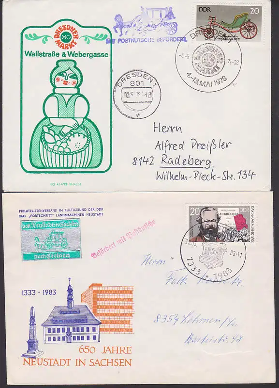 Postkutschenbeförderung Dresden und Neustadt, SSt. Dresdner Markt 650 Jahre Neustadt in Sachsen