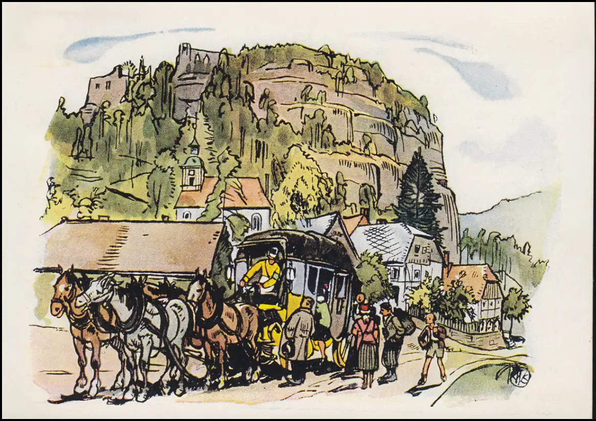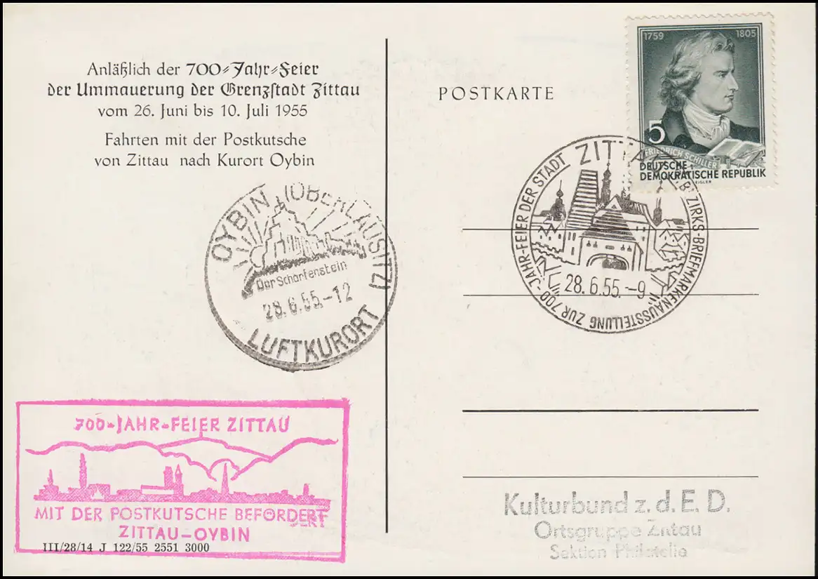 Postkutschenpost Zittau - Oybin 28.6.55 mit SSt und rotem Beförderungsstempel