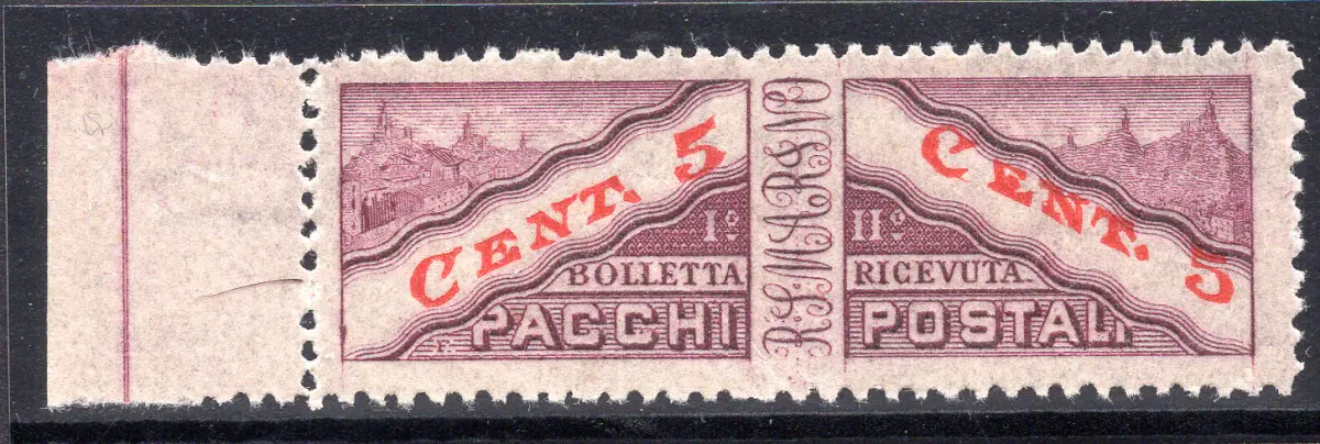 Postpakete Cent. 5 ungezähnte Mitte Vollgummi MNH - Postpakete Cent. 5 n. 16/ie sehr guter b. von f. mittig ungezähnt - Selten - Kat. 400 Code 689/11