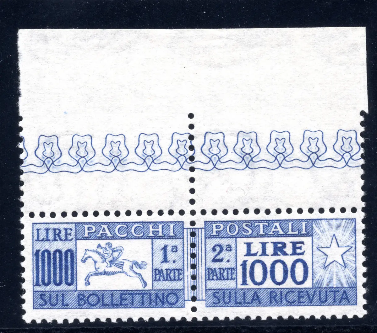 MNH - Vollgummi - - Postpakete Lire 1.000 Pferd Nr. 81 wunderschönes Exemplar b. von f. Zahnung Kamm - sehr gute Qualität und sehr gute Zentrierung - Cert. Confietti Cod.474/182