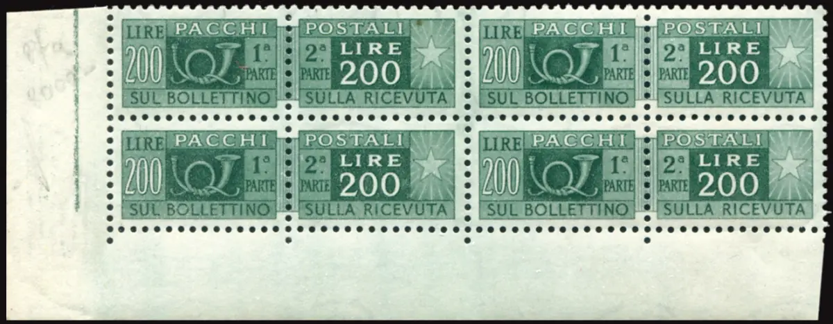 Postpakete Lire 200 Rad III gerade Nr. 78/IV Viertel a. von f. Vollgummi MNH - Postpakete Lire 200 Rad III gerade Nr. 78/IV Viertel v.a. von f. ohne die griechische am Rand - sehr gut, sehr frisch gut zentriert - Kat. euro 550 Cod. 293/16