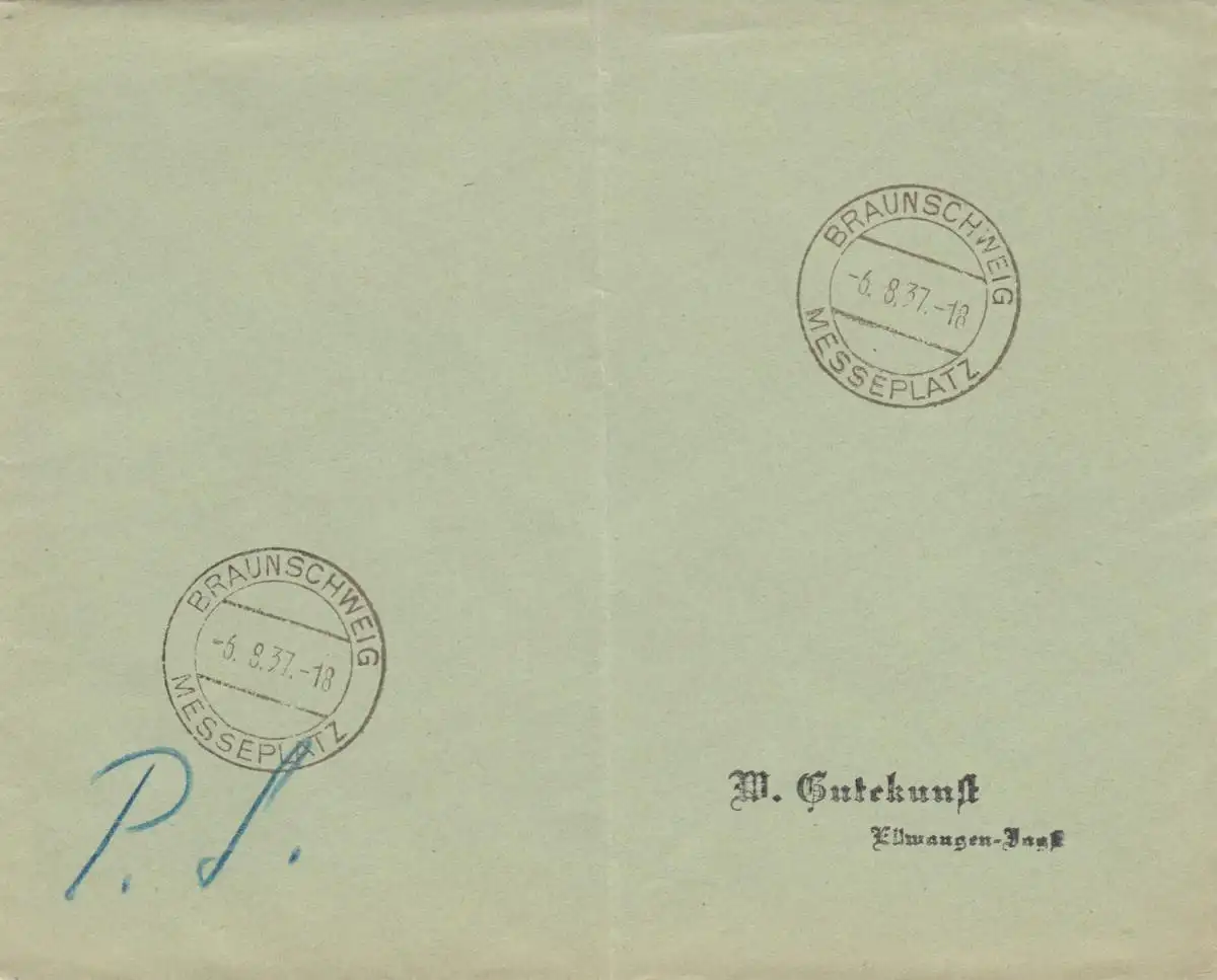 Postsache Kuvert 1937: Braunschweig, Messeplatz