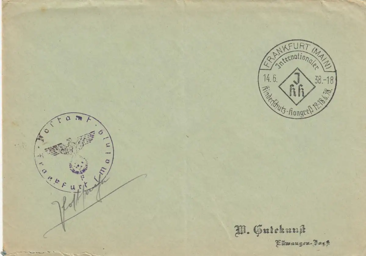 Postsache Kuvert 1938: Frankfurt/Main Kinderschutz Kongreß