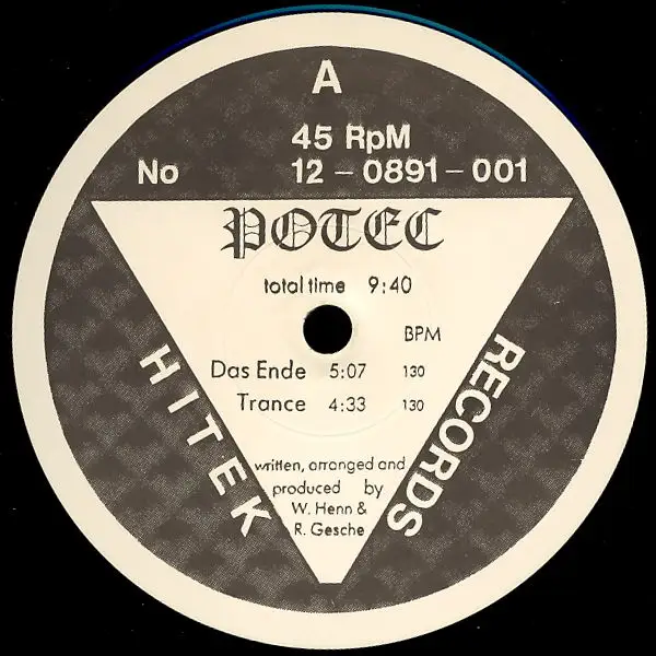 12" Maxi Potec - Das Ende, neutrales Cover, Zustand Platte VG+; Made in Germany 1991 Hitek 12-0891-001, Tracks 5:07, Trance 4:33, The Plague 1 5:25, The Plague 2 3:14, The Plague 3 2:43