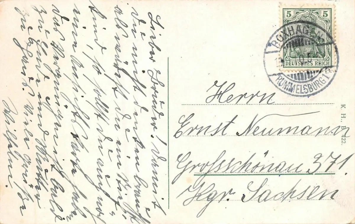 Rückseite: gelaufen 1910 von Boxhagen Rummelsburg