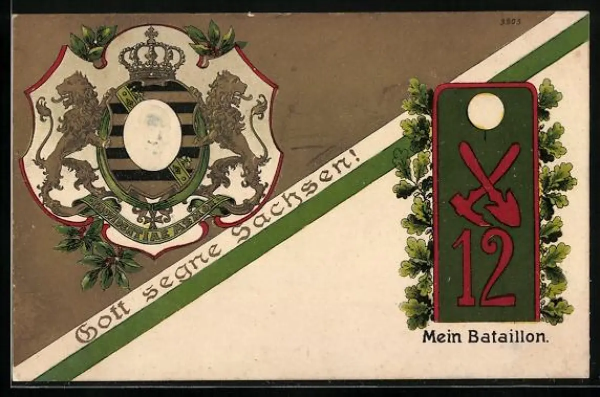 Präge-AK Bataillon 12, Gott segne Sachsen, Wappen