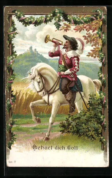 Präge-AK Behüt Dich Gott!, Trompeter zu Pferde