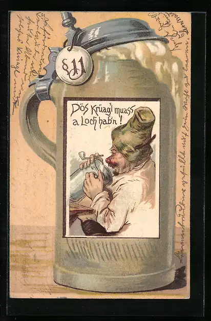 Präge-AK Betrunkener mit Tabakspfeife im Bierkrug, Brauerei, Passepartout